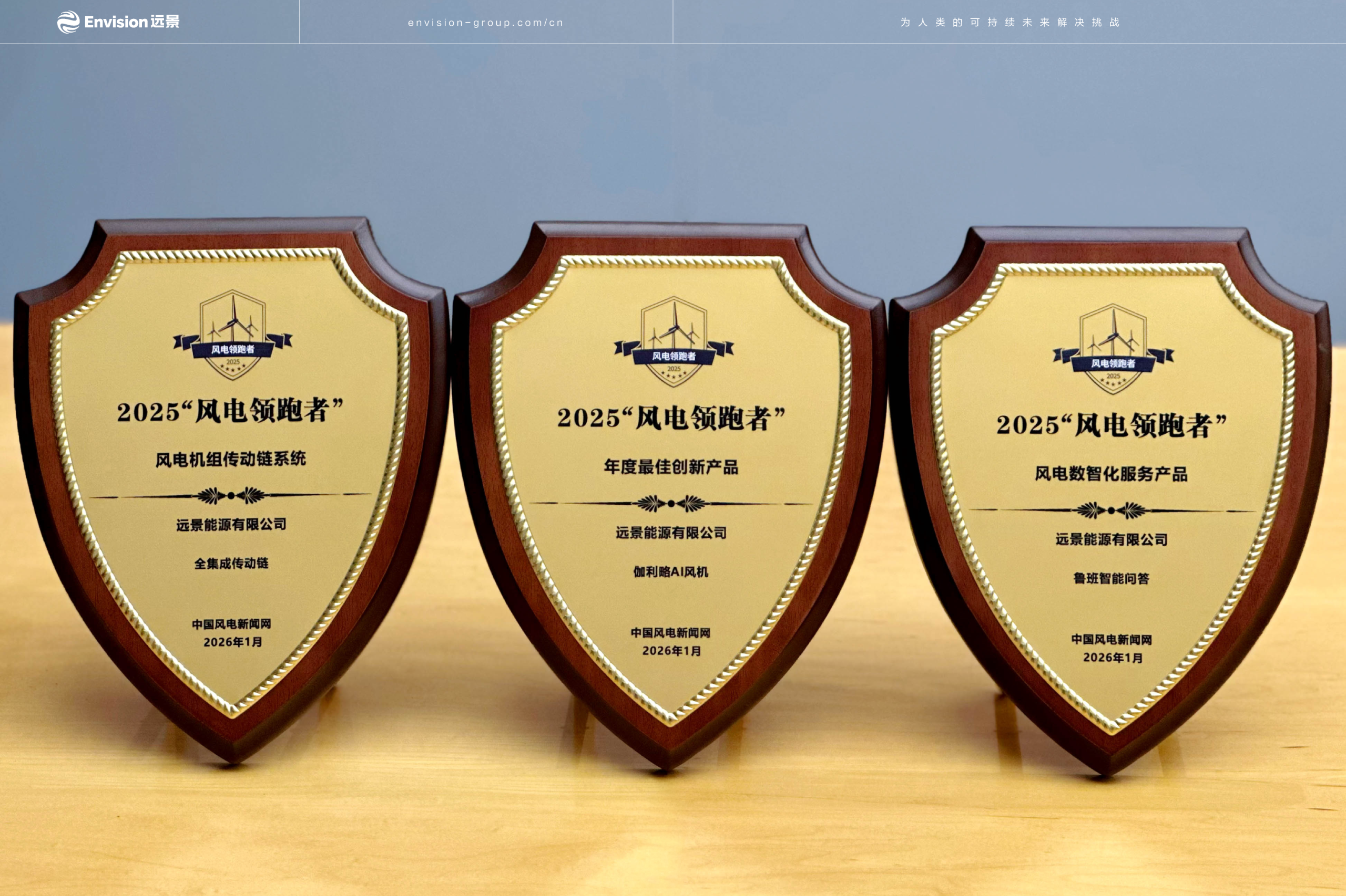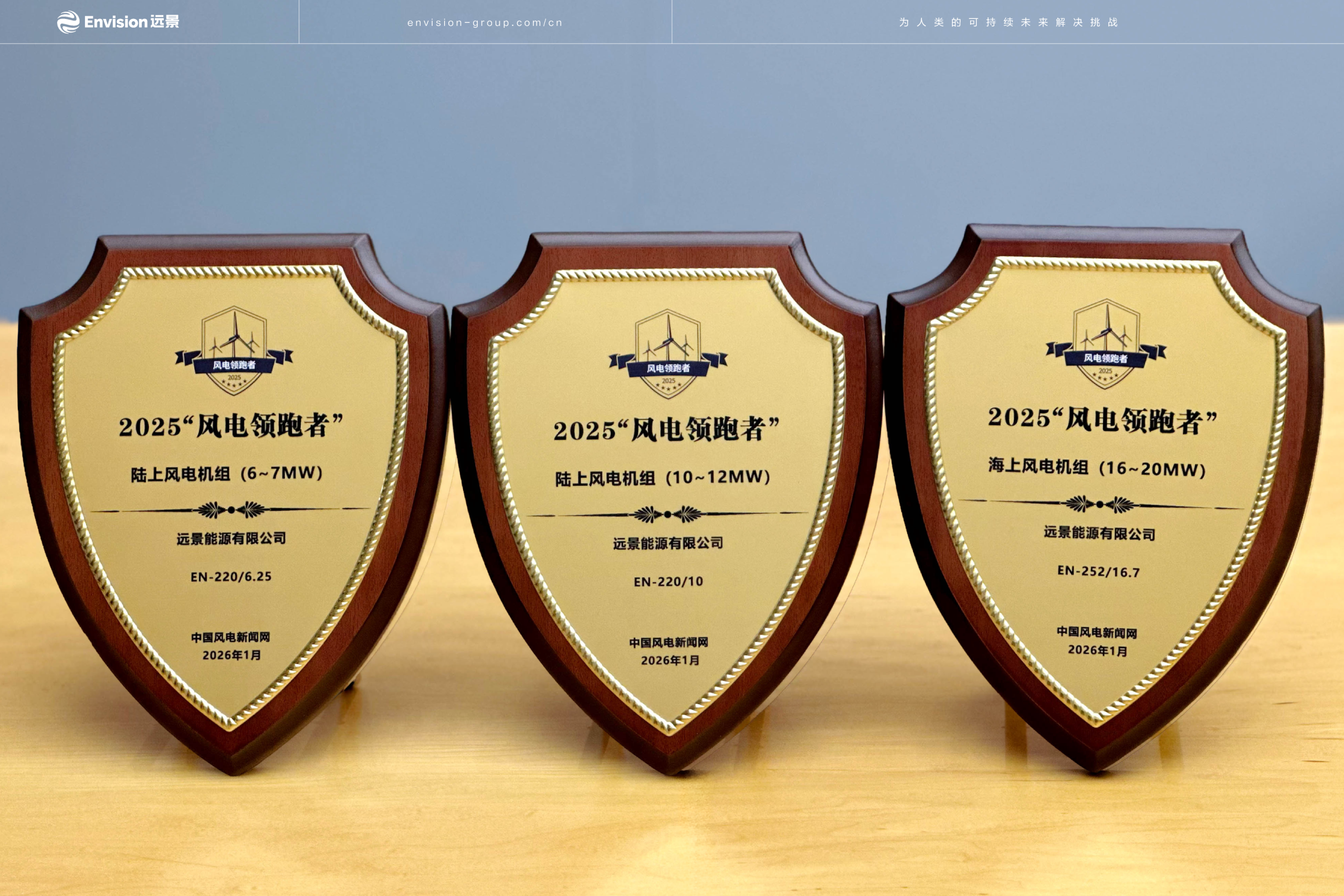 除此之外,在本届“风电领跑者”论坛上,远景围绕风电全生命周期打造的多款智能化产品与解决方案同样获得行业认可:EN‑220/6.25、EN‑220/10分别荣获6–7MW、10–12MW最佳陆上机组奖,EN‑252/16.7获16–20MW最佳海上机组奖;全集成传动链获最佳零部件产品奖,伽利略AI风机获年度最佳创新产品奖。奖项涵盖整机、核心部件及智能化系统等多个层面,体现了远景在风电装备与AI应用领域的综合实力。