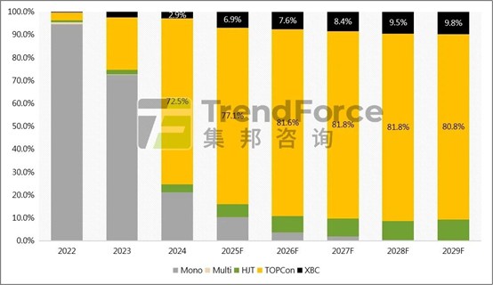 数据来源:集邦咨询,2022-2029年不同技术组件市场比趋势