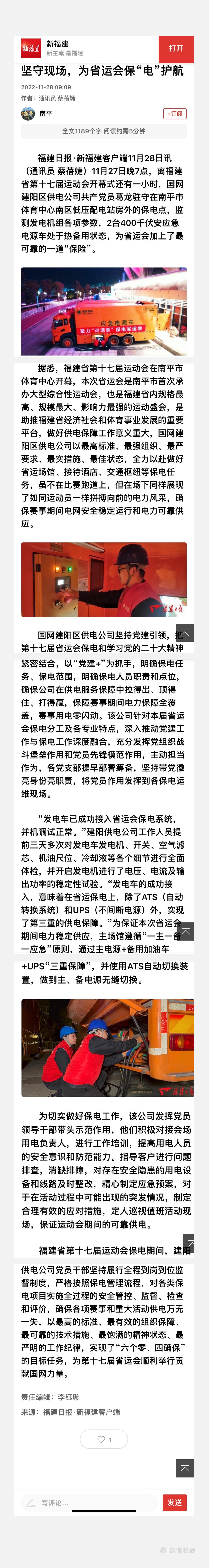 【福建日报客户端】坚守现场,为省运会保“电”护航