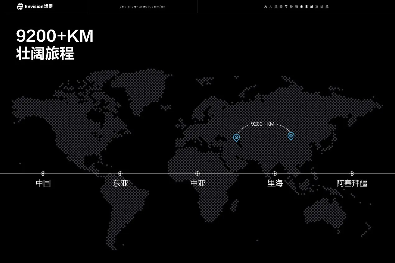 为了将风机设备按时保质运抵里海之滨,远景能源项目团队踏上了一条跨越9200多公里的壮阔旅程——自中国出发,途经东亚、中亚多个国家,最终穿越里海抵达目的地。这条开创历史的线路融合了内陆超长距离运输与跨海航运的复杂组合,不仅是现代物流领域的重大突破,也成为了跨越山海实现全球化绿色能源合作的生动案例。