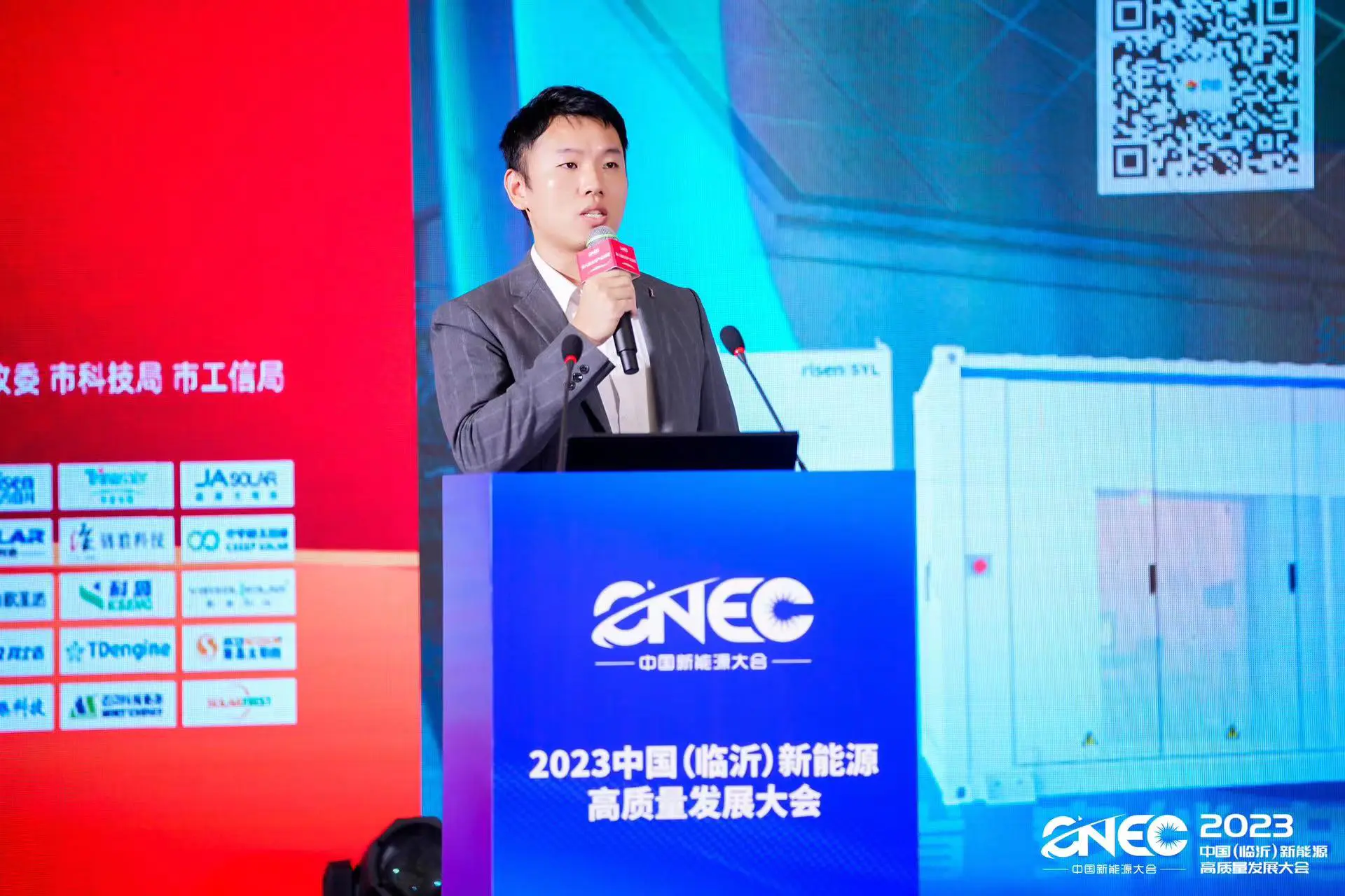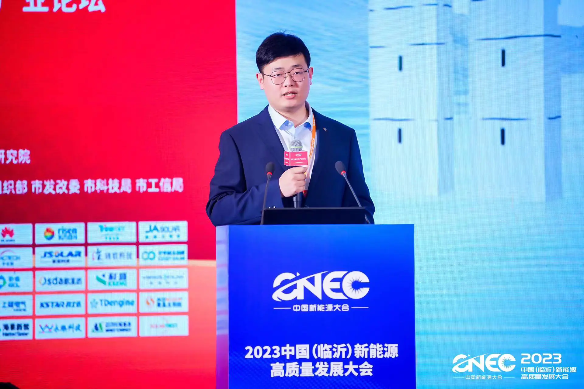 曜灵(广东)新能源科技有限公司创始人兼董事长章良懿,纬景储能科技有限公司首席智造官刘雷,在开幕式上作为企业界代表发言,对中共临沂市委市政府给予企业的支持表示感谢。