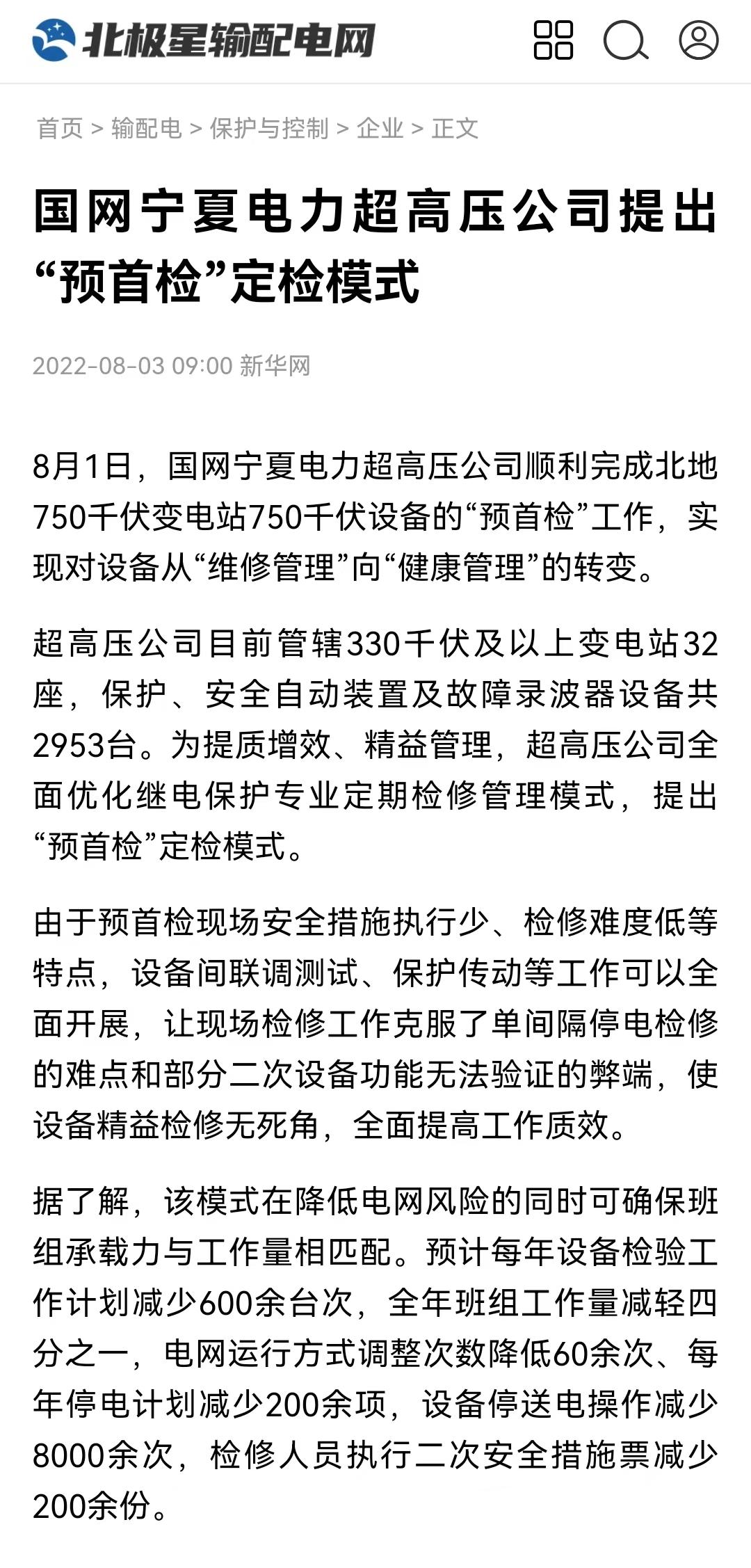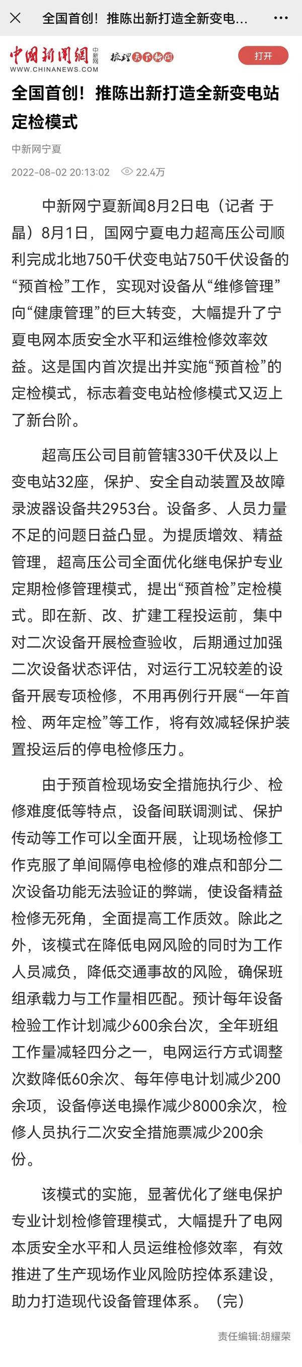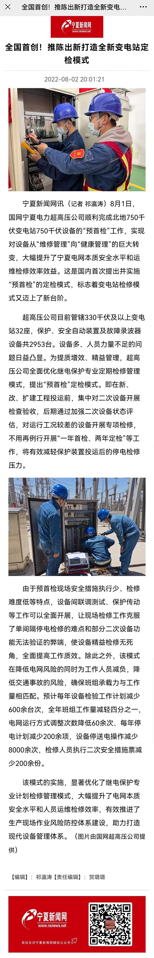 【媒体报道】全国首创!宁夏打造全新变电站定检模式