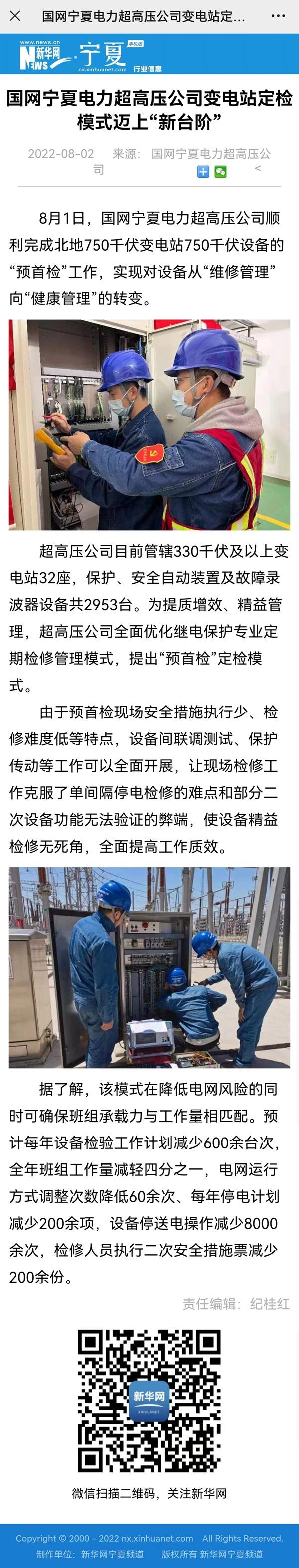 【新华网】国网宁夏电力超高压公司变电站定检模式迈上“新台阶”