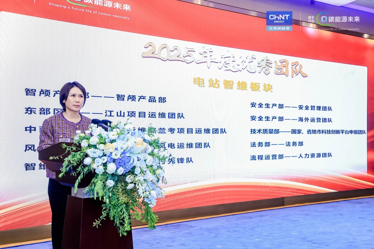 正泰新能常务副总裁、首席可持续发展官黄海燕宣读《关于表彰2025年度优秀团队与个人的决定》文件。在集团支持下,新能源经营班子带领全体员工在浪急风高的2025年稳舵前行,各项成绩的背后,凝聚着正泰团队与个人的努力、智慧与汗水。大会对2025年为公司发展做出突出贡献的先进团队、干部、员工进行表彰奖励。