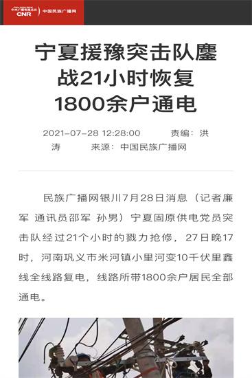 【央广网】宁夏援豫突击队鏖战21小时恢复1800余户通电