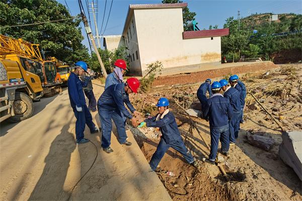 巩义市米河镇在这次雨灾中配网线路受损严重,小里河变10千伏线里鑫线是受损最严重的线路之一,7月19日晚12时,该线路所带支石、铁山、小里河三个行政村1800余户居民全部停电,水、电、通信、交通同时中断,百姓生产生活受到严重影响。