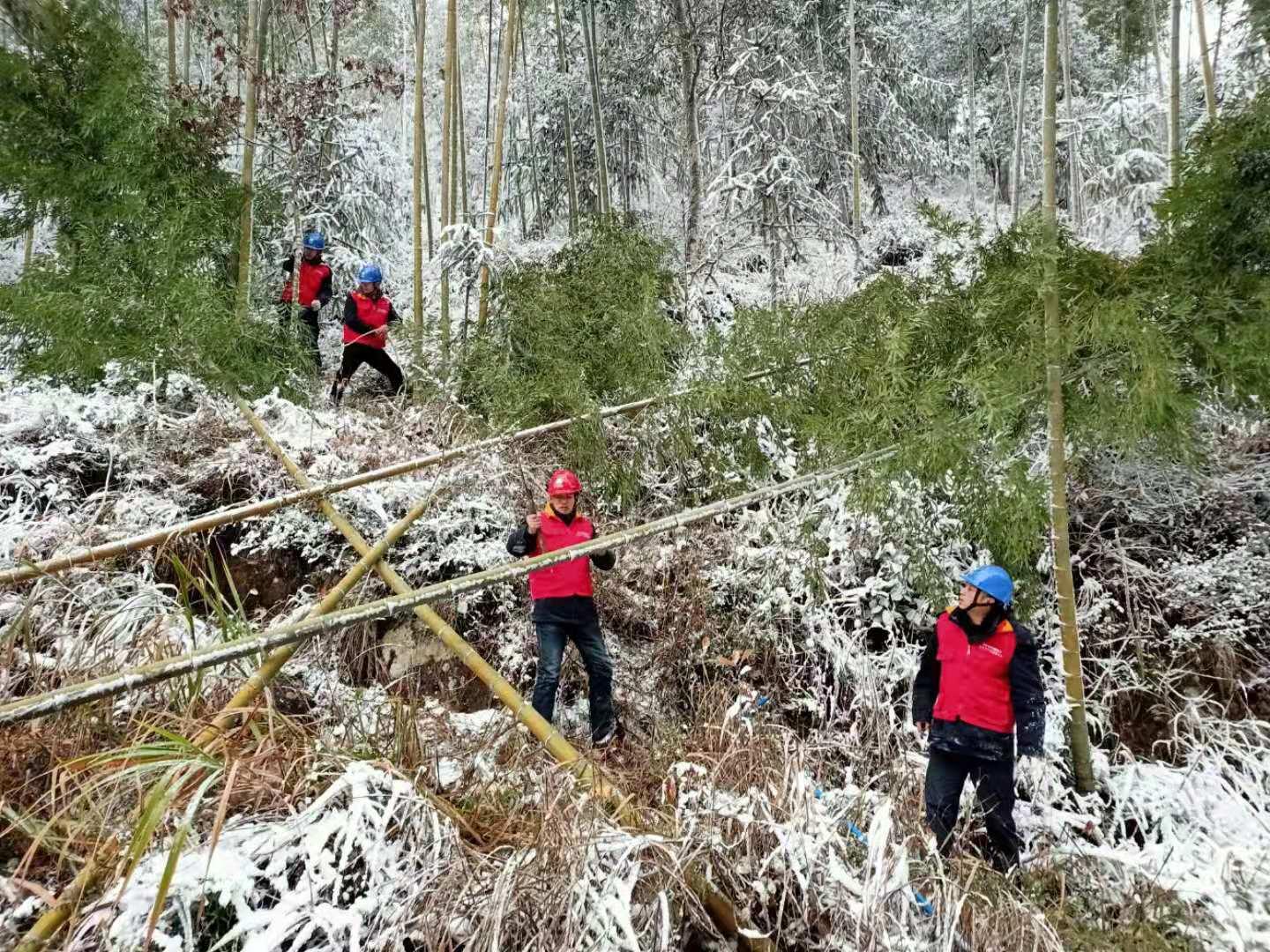 在特巡的过程中,党员服务队还发现部分线路走廊上边坡有毛竹快接近导线,存在安全隐患,立即开展清障工作,大家不放过一处树竹隐患,不留下一个清理死角,共计清砍毛竹120多根,确保了线路走廊的安全可靠性。 截至目前,光泽电网运行平稳。但低温雨雪天气还将持续,国网光泽县供电公司会密切跟踪天气变化状况,备足抢修材料和备品备件,落实好人员及交通工具,随时做好抢修准备,全力保障光泽县居民冬季可靠用电。