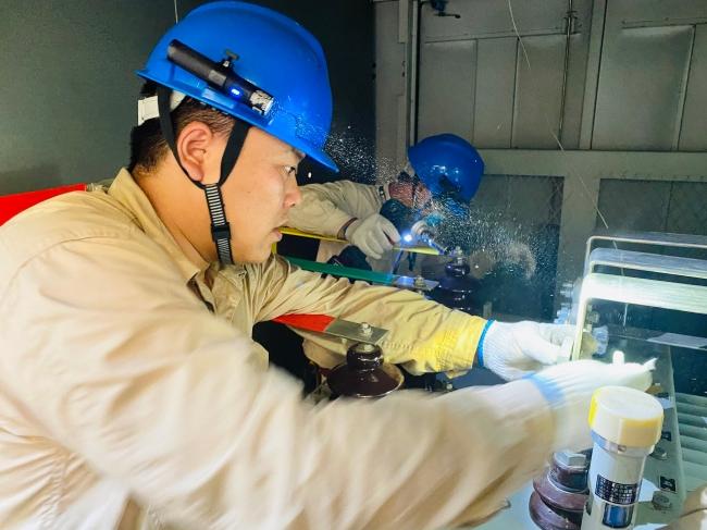从24日中午到深夜,他们在烈日下闷热的树丛间来回奔走,紧张地想着抢修对策和方案,一遍遍做着受损柜体的各项电气试验,在闷热的小空间一待就是近十个小时。