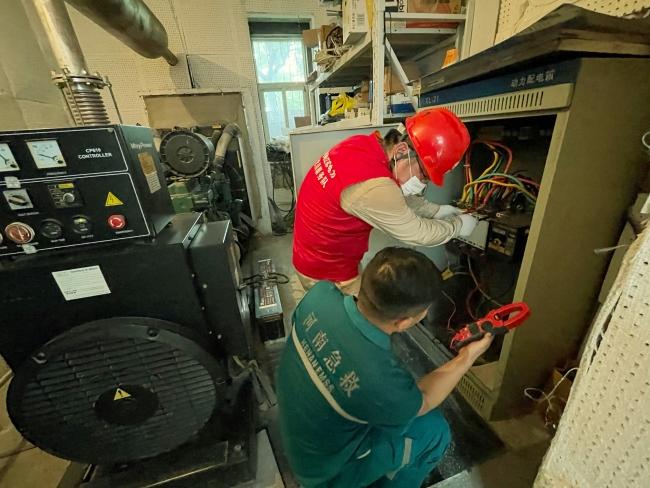 24日17时,支援队伍完成了对所负责区域电力设备的第三次巡视和检查,确保发电车及地下配电房设备安全稳定运行,并最终将地下配电房积水的问题彻底解决。(李怡萌陈泽王亮)