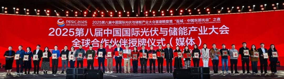 在全场嘉宾的共同见证下,由2025第八届中国国际光伏与储能产业大会组委会发起,联合中国财富传媒集团、时代传媒集团、中国经营报、21世纪经济报道、每日经济新闻等主流财经媒体,及InfoLink、TaiyangNews、pv-tech、能见、国际能源网、索比光伏网、华夏能源网、光伏們、世纪能源网、光伏资讯、黑鹰光伏、赶碳号、能源一号、光伏盒子等近百家行业媒体、财经自媒体,郑重倡议成立全球光储行业新媒体联盟,以传播之力赋能产业之兴,用协同之声讲好光储故事,携手共绘中国光储高质量发展的宏伟蓝图。