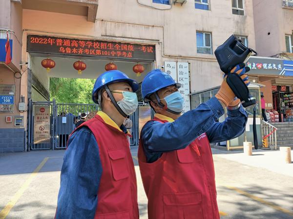 6月6日,供电员工在米东区第101中学考点进行巡线测温,全力保障高考期间安全可靠供电。(葛赵华摄)